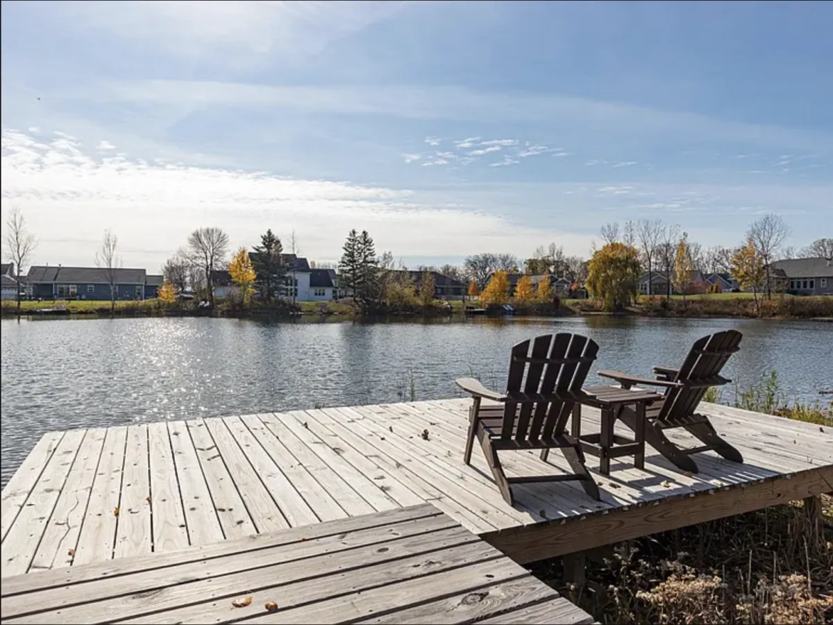 Privately Shared Pond where you can swim, fish, kayak and watch sunsets from your private dock