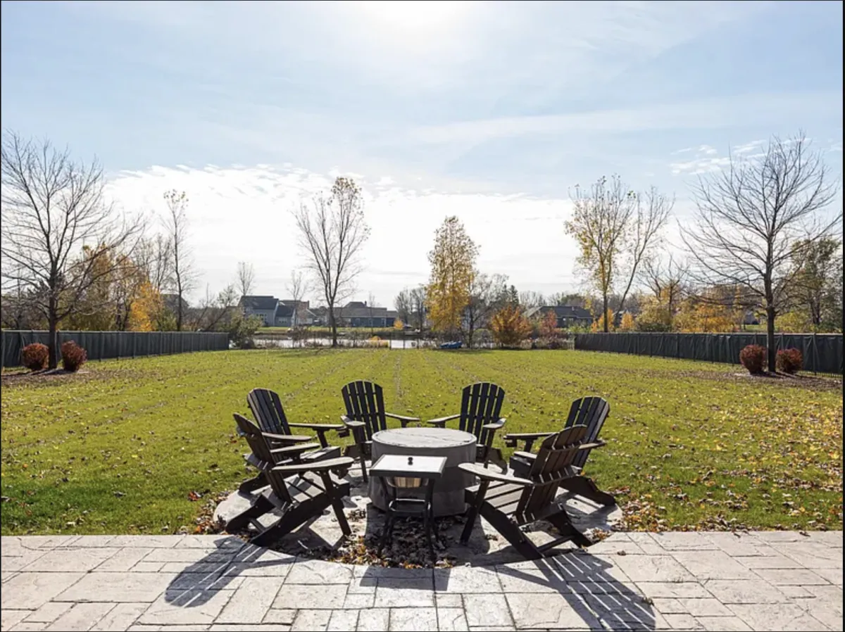 Massive Fenced-In Backyard with Large Concrete Patio, Fire Pit, and Fruit Trees